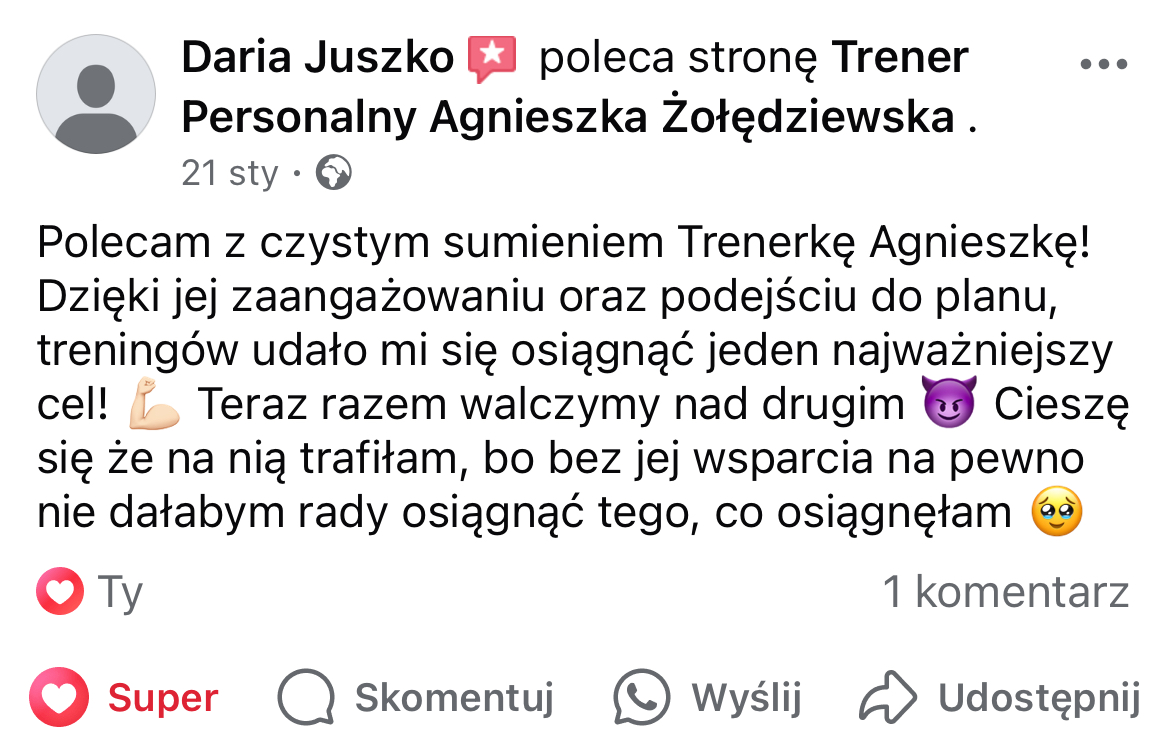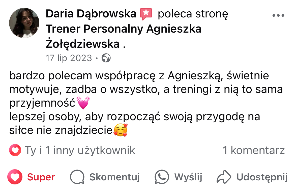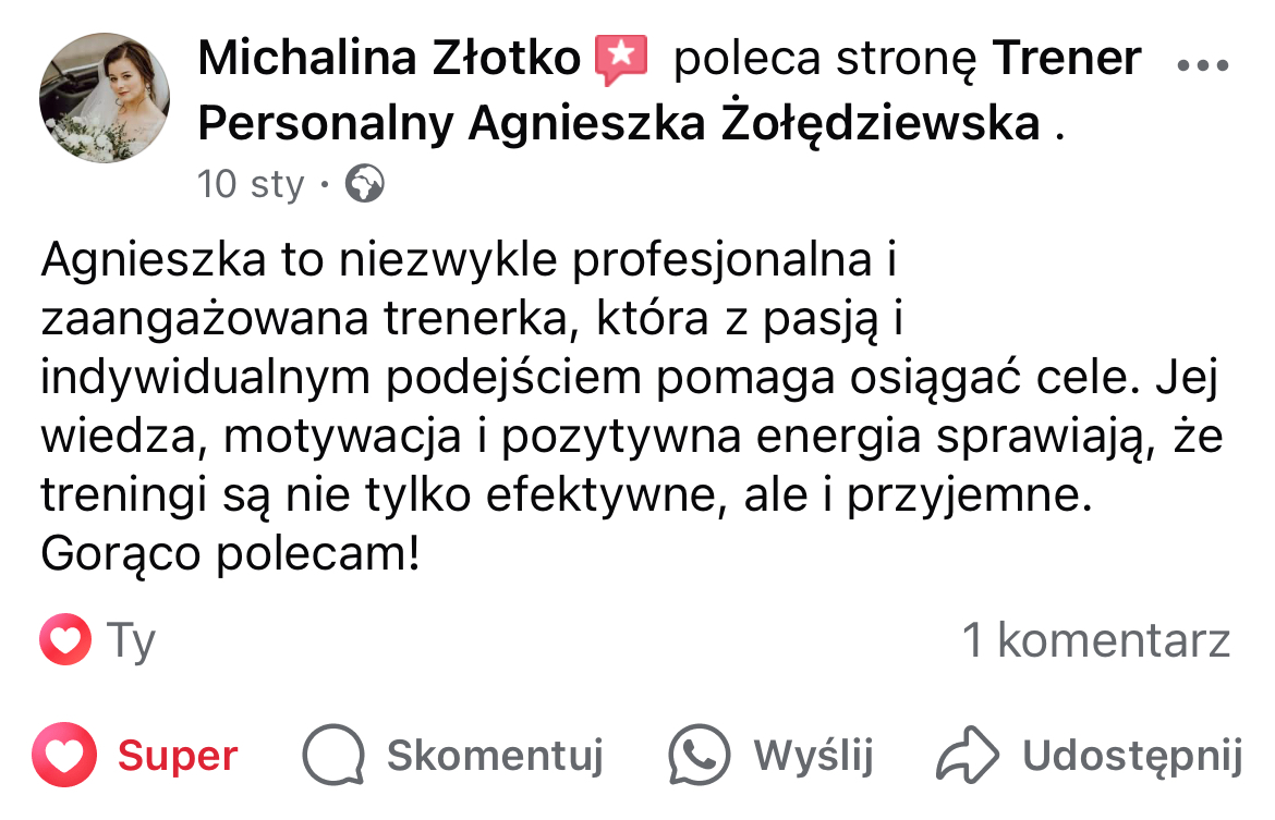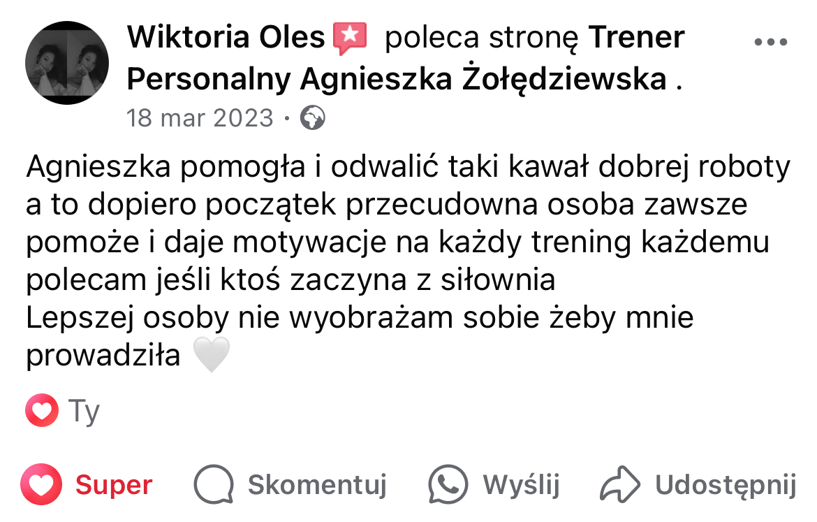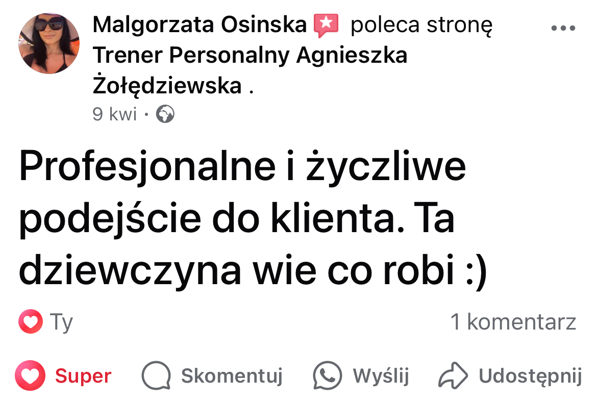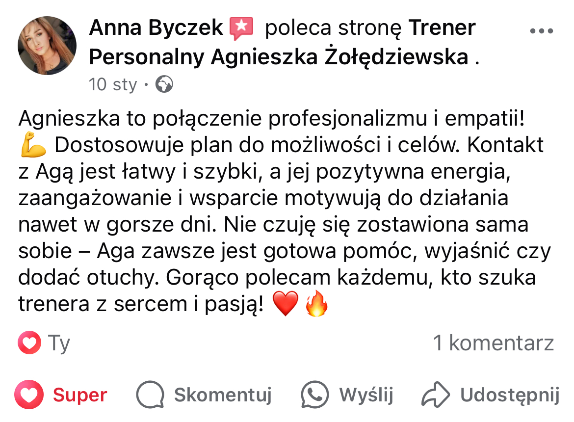 W mojej pracy dążę do tego, by zaszczepić w moich podopiecznych prawdziwą miłość do ruchu. Największą satysfakcję daje mi obserwowanie, jak z czasem zmienia się ich spojrzenie na siebie i na życie — gdy zaczynają koncentrować się na procesie, a nie tylko na celu i sięgają po to, co wcześniej wydawało się poza ich zasięgiem. Chcę pokazać, że aktywność fizyczna to nie tylko droga do wymarzonej sylwetki i lepszej formy, ale przede wszystkim sposób na budowanie wewnętrznej siły, pewności siebie i radości z codzienności.