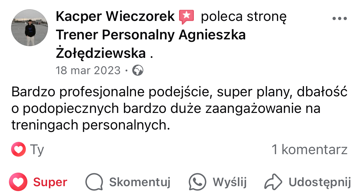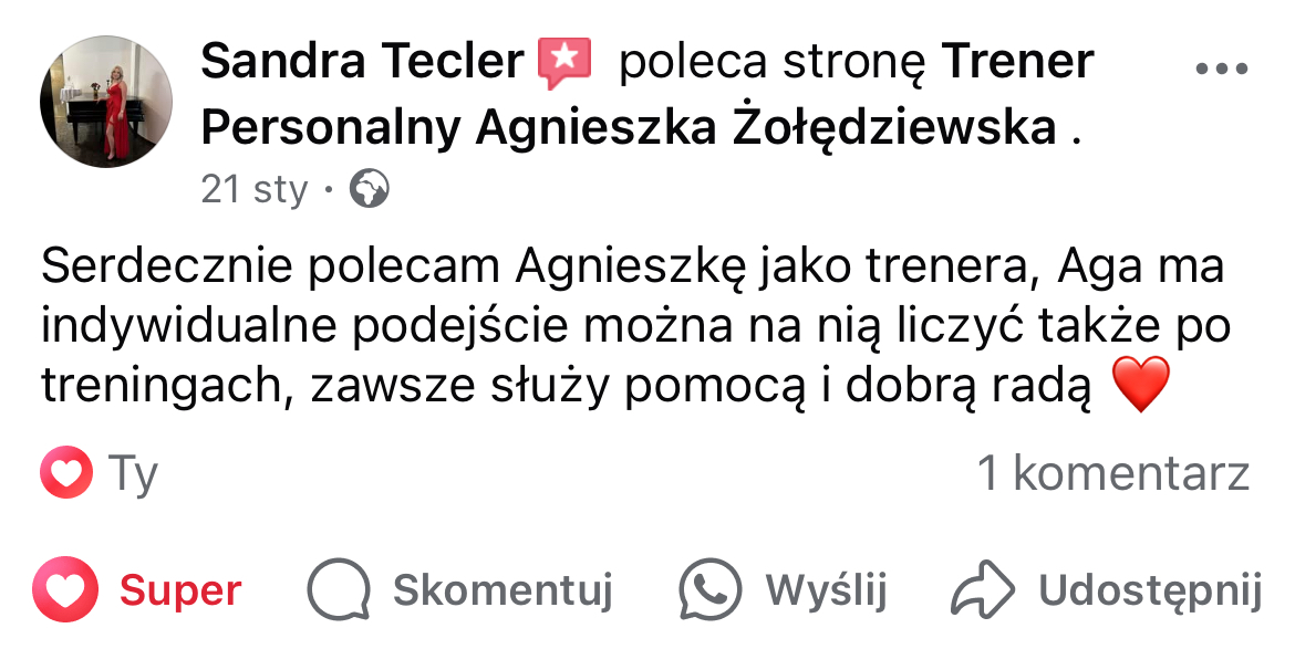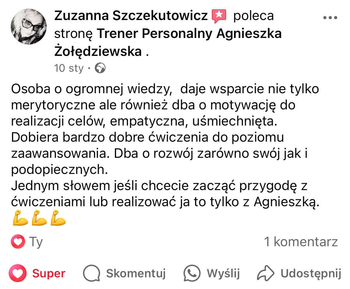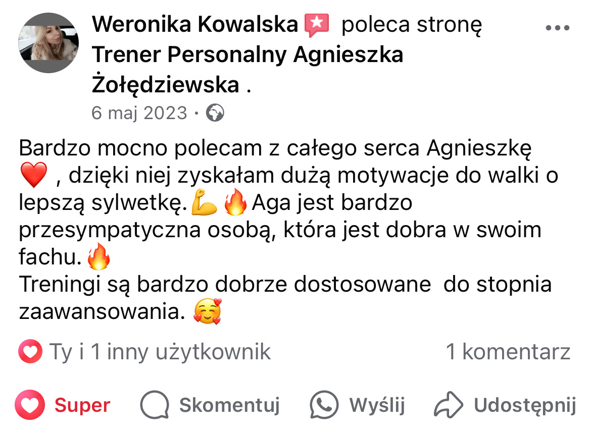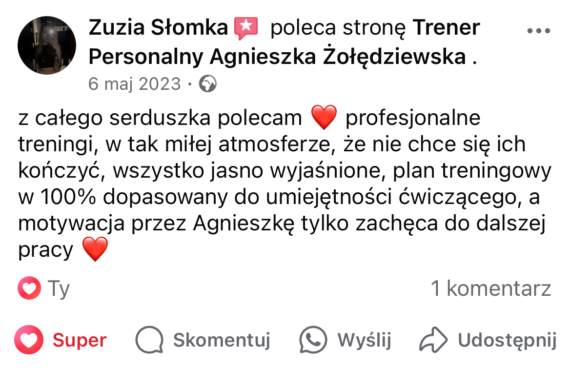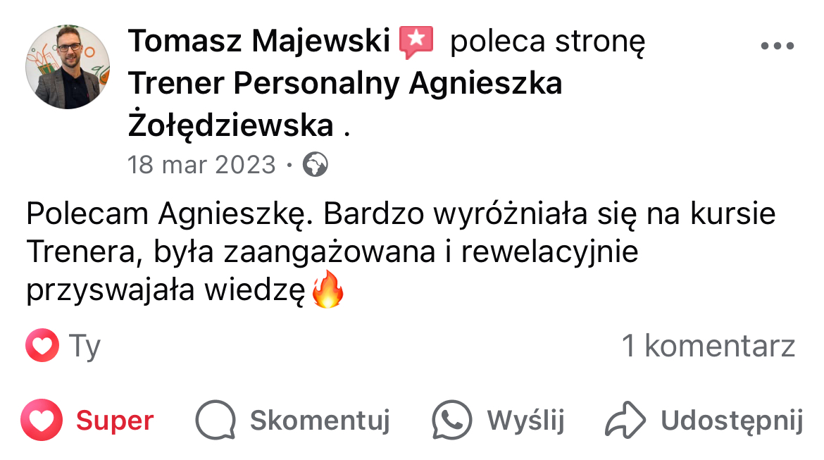 W mojej pracy dążę do tego, by zaszczepić w moich podopiecznych prawdziwą miłość do ruchu. Największą satysfakcję daje mi obserwowanie, jak z czasem zmienia się ich spojrzenie na siebie i na życie — gdy zaczynają koncentrować się na procesie, a nie tylko na celu i sięgają po to, co wcześniej wydawało się poza ich zasięgiem. Chcę pokazać, że aktywność fizyczna to nie tylko droga do wymarzonej sylwetki i lepszej formy, ale przede wszystkim sposób na budowanie wewnętrznej siły, pewności siebie i radości z codzienności.