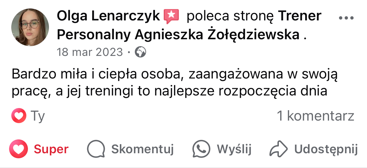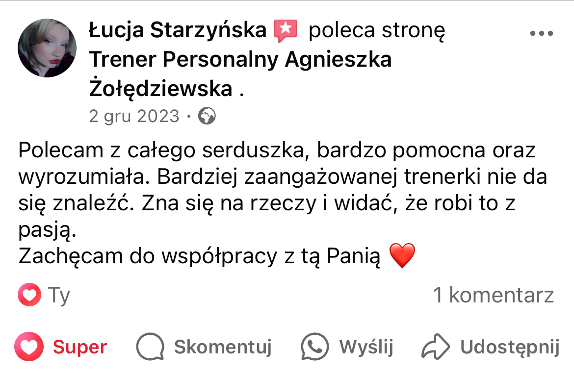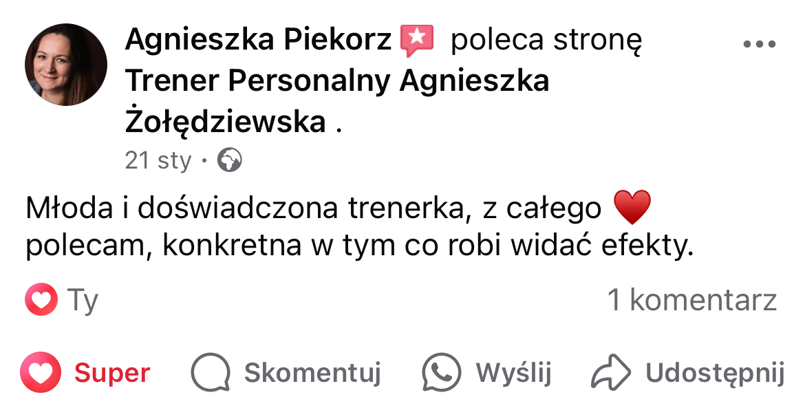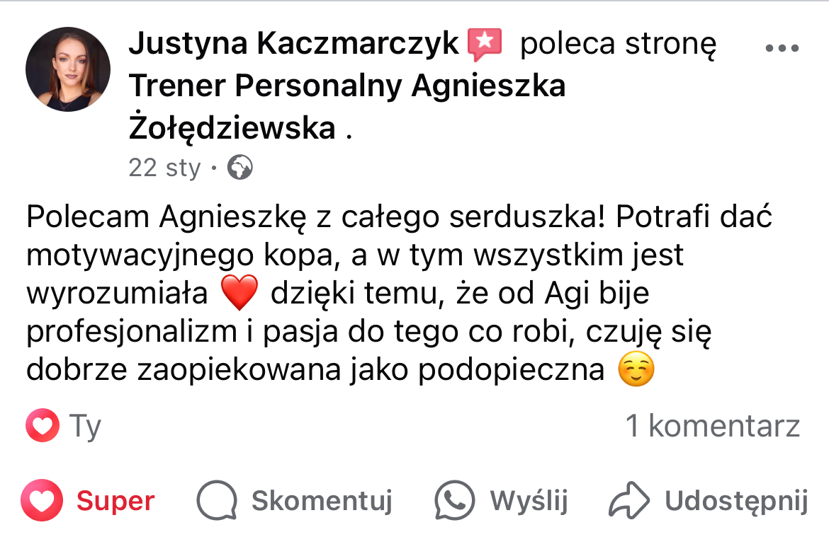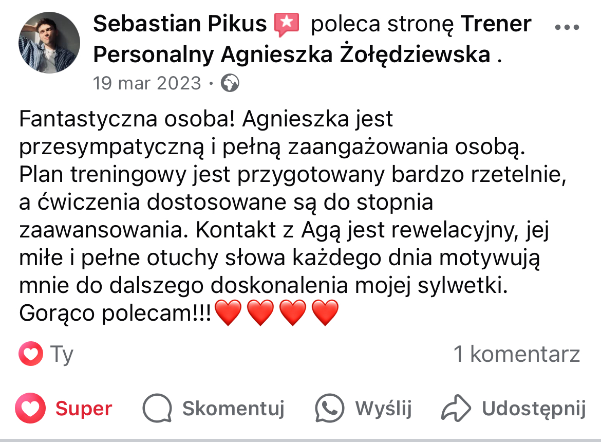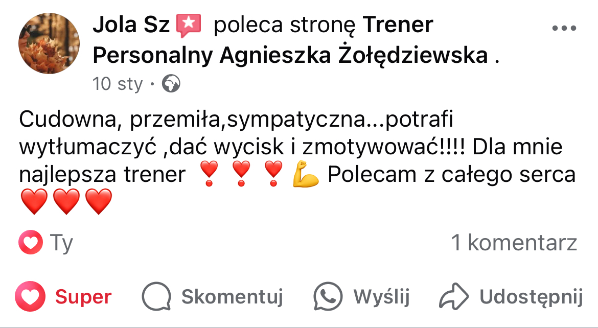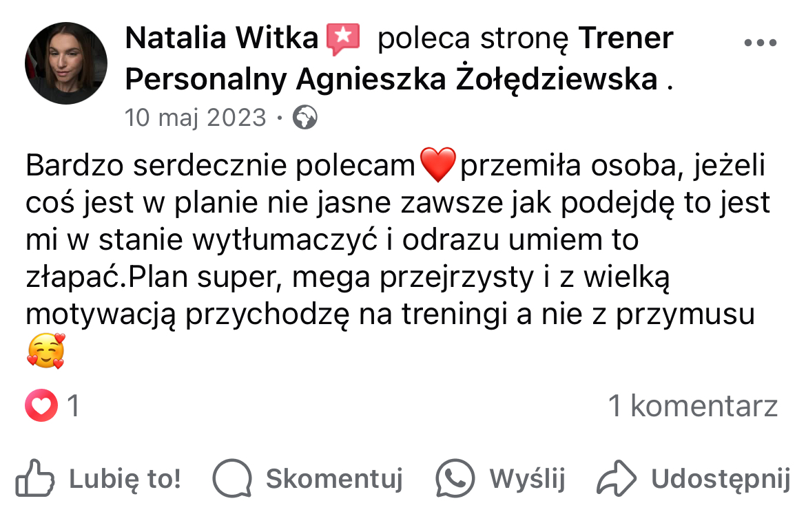W mojej pracy dążę do tego, by zaszczepić w moich podopiecznych prawdziwą miłość do ruchu. Największą satysfakcję daje mi obserwowanie, jak z czasem zmienia się ich spojrzenie na siebie i na życie — gdy zaczynają koncentrować się na procesie, a nie tylko na celu i sięgają po to, co wcześniej wydawało się poza ich zasięgiem. Chcę pokazać, że aktywność fizyczna to nie tylko droga do wymarzonej sylwetki i lepszej formy, ale przede wszystkim sposób na budowanie wewnętrznej siły, pewności siebie i radości z codzienności.
